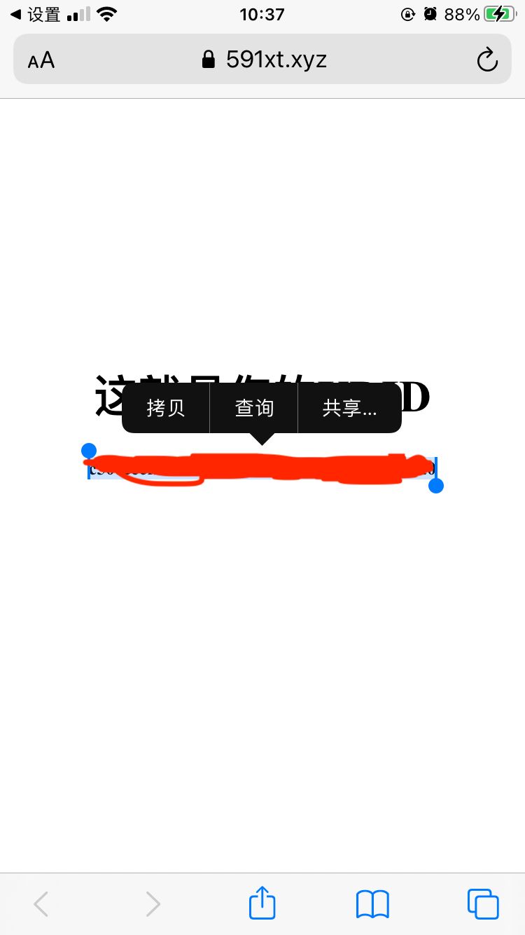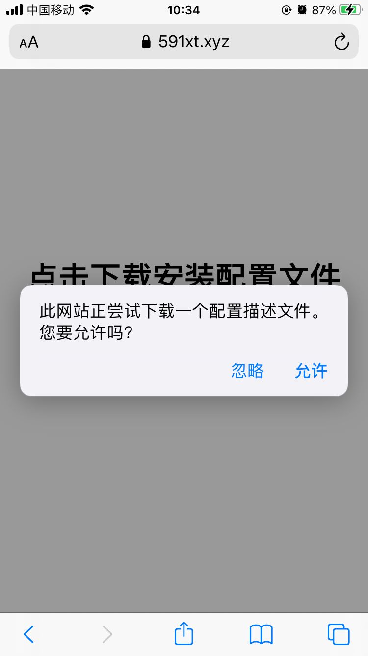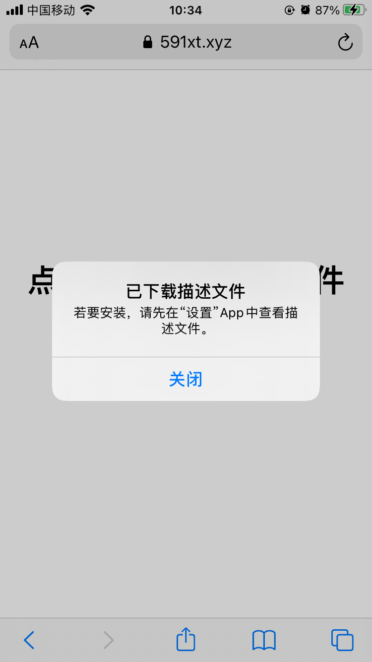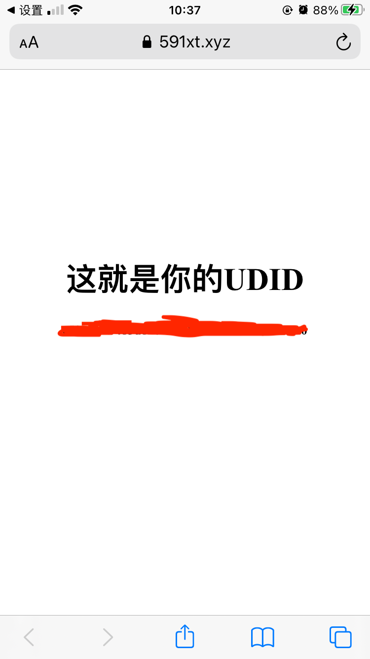 获取UDID 发表于 2021-03-05 | 分类于 iOS 用safai浏览器打开网址 https://591xt.xyz/UDID/ 或者扫描 点击下载 然后允许 然后关闭 打开设置 往下翻 找到通用点进去 再往下翻 找到描述文件 点进去 然后点击右上角安装 输密码 然后安装 长按拷贝即可