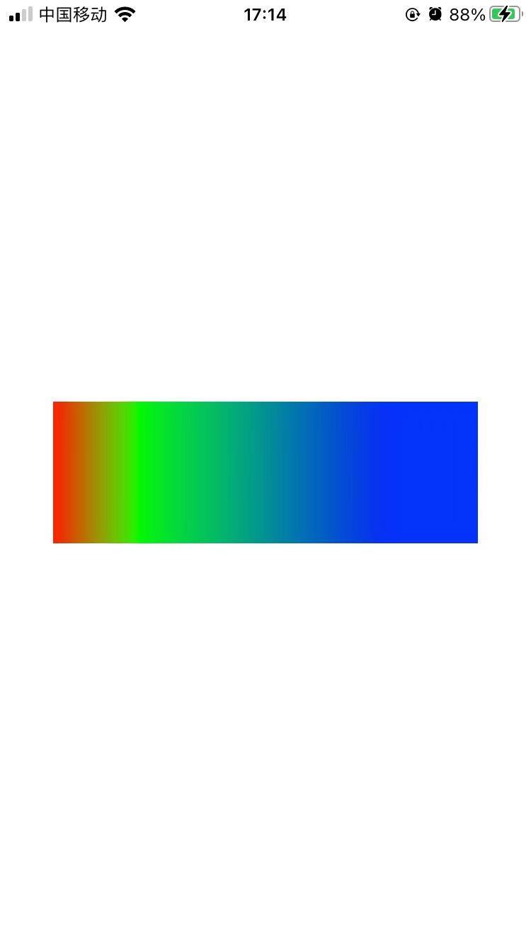 | UILabel* lab=[[UILabel alloc] initWithFrame:(CGRectMake(0, 0, 300, 100))]; CAGradientLayer *gradientLayer = [CAGradientLayer layer]; //开始颜色,中间颜色,结束颜色,中间没有可以省略 gradientLayer.colors = @[(__bridge id)[UIColor redColor].CGColor, (__bridge id)[UIColor greenColor].CGColor,(__bridge id)[UIColor blueColor].CGColor,]; //渐变的区域0~1代表从头到尾渐变 gradientLayer.locations = @[@0.0,@0.2,@0.8]; //水平渐变:(0, 0)->(1, 0),垂直渐变:(0, 0)->(0, 1) gradientLayer.startPoint = CGPointMake(0, 0); gradientLayer.endPoint = CGPointMake(1, 0); //渐变的长度 gradientLayer.frame = CGRectMake(0, 0, lab.frame.size.width, 100); UIGraphicsBeginImageContext(CGSizeMake(lab.frame.size.width, 100)); [gradientLayer renderInContext:UIGraphicsGetCurrentContext()]; UIImage*image = UIGraphicsGetImageFromCurrentImageContext(); UIGraphicsEndImageContext(); lab.backgroundColor=[UIColor colorWithPatternImage:image]; [self.view addSubview:lab];