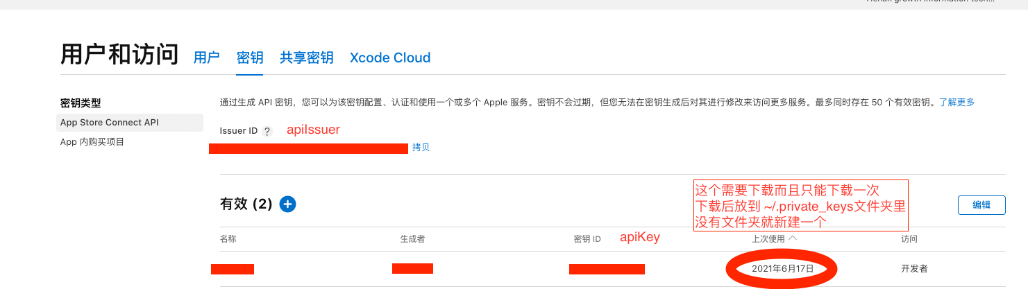 上传到应用商店的还有两个参数apiKey和apiIssuer